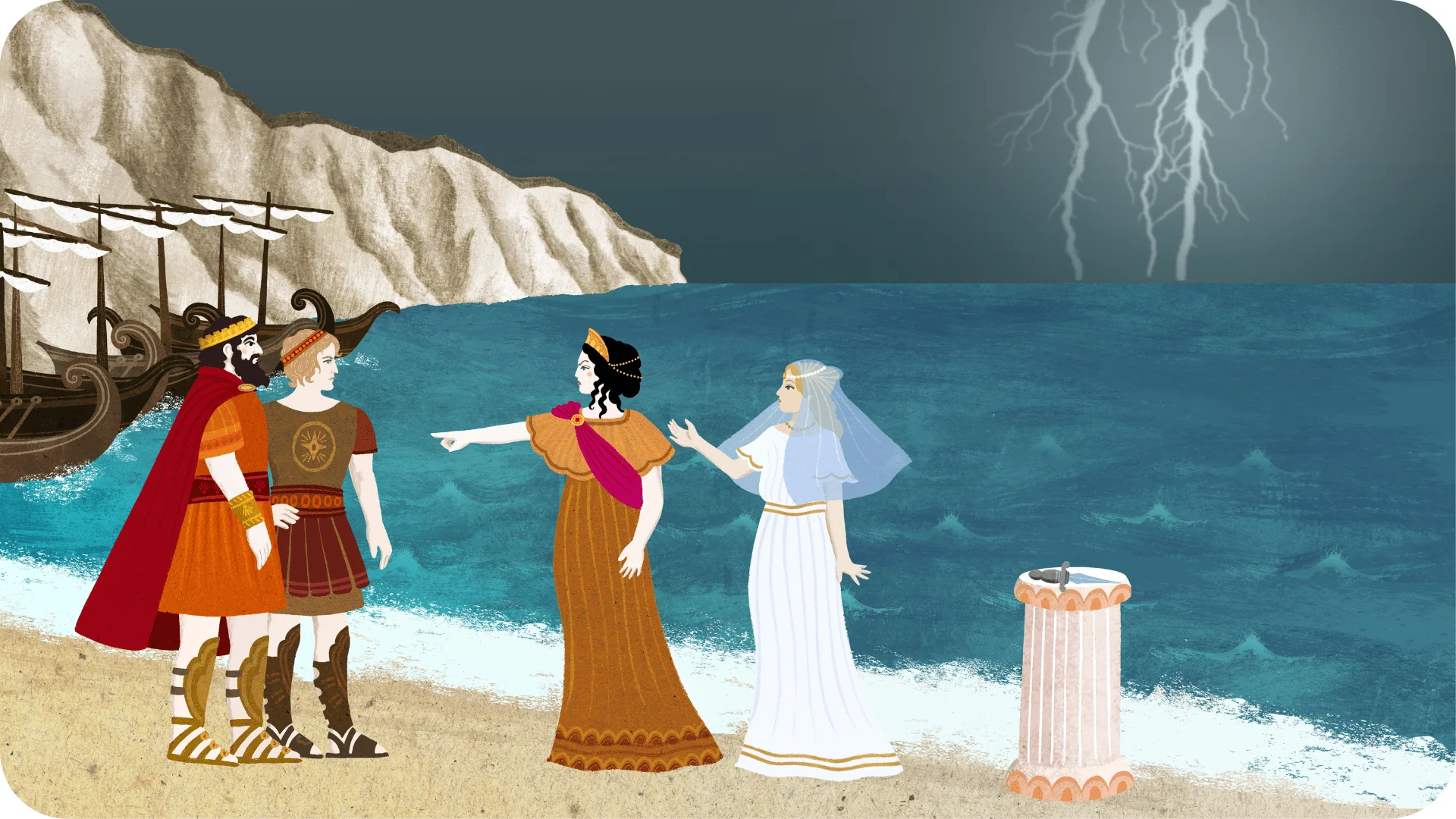 L’armée grecque est enfin rassemblée, prête à embarquer pour Troie… mais la déesse Artémis est en colère et fait souffler des vents contraires. Grâce à l’intervention d’Iphigénie, les Grecs parviennent finalement à mettre les voiles et débarquent à Troie où ils tentent de négocier avec le roi Priam, sans succès. La guerre est inéluctable…